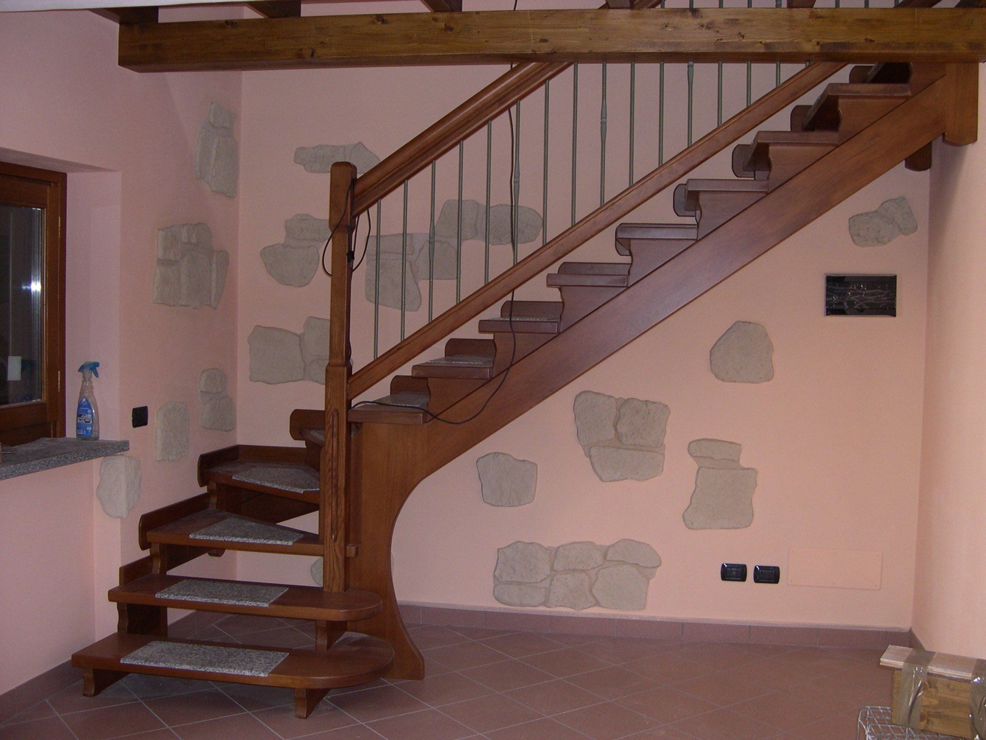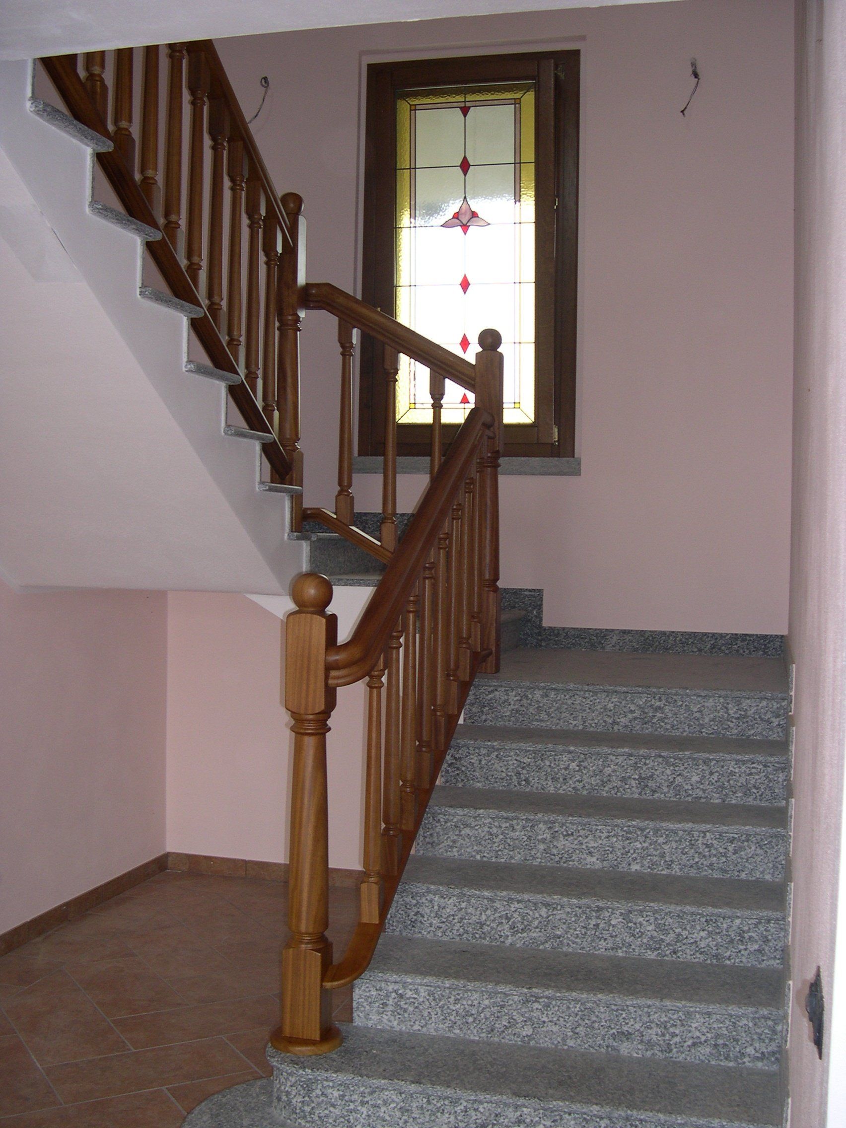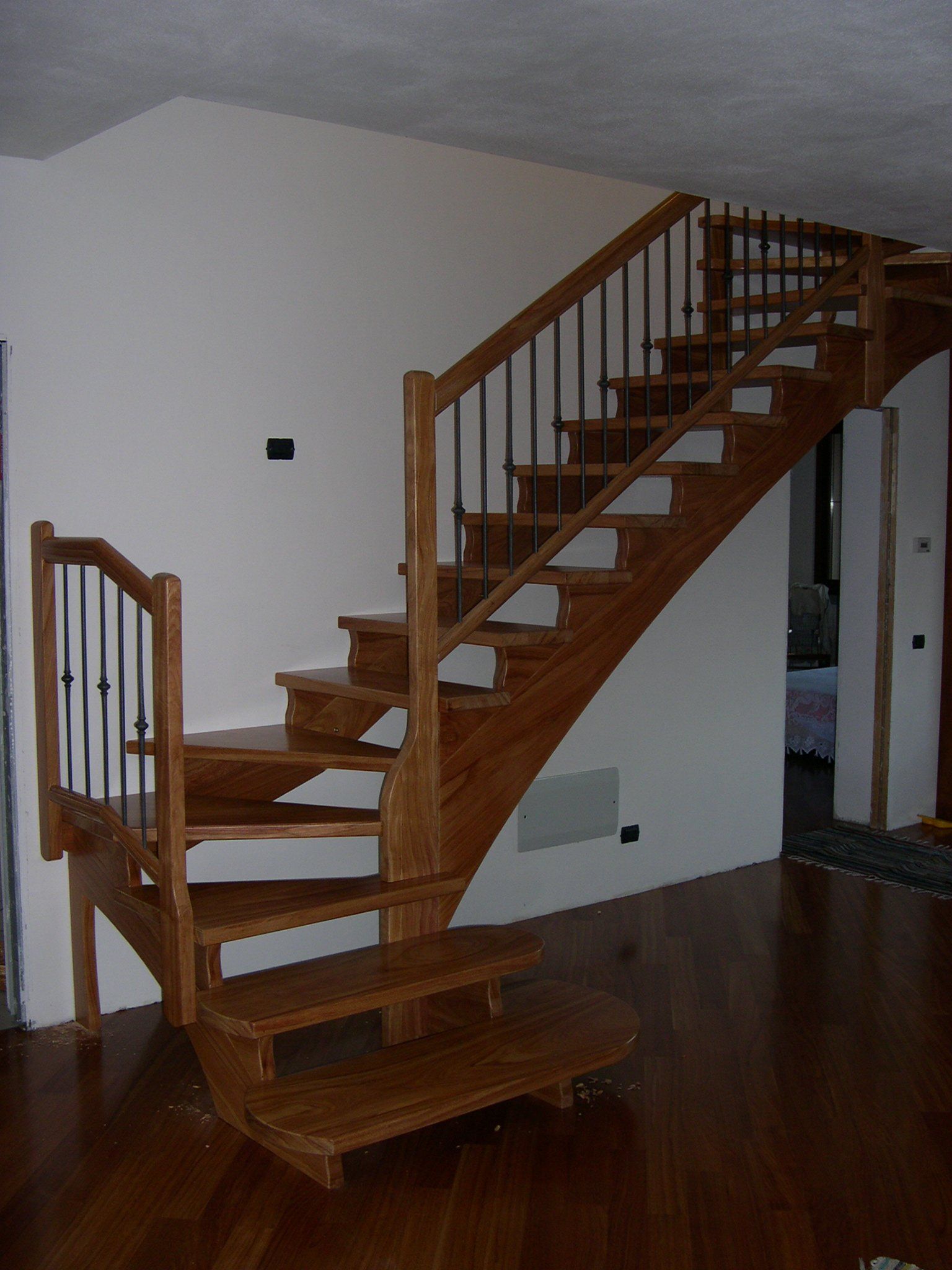 Le scale vengono realizzate in legni pregiati come Faggio, Rovere, Castagno, Iroko ed altri su richiesta , completati da barriere con colonnette in legno tornito oppure bacchette in acciaio inox o ferro .